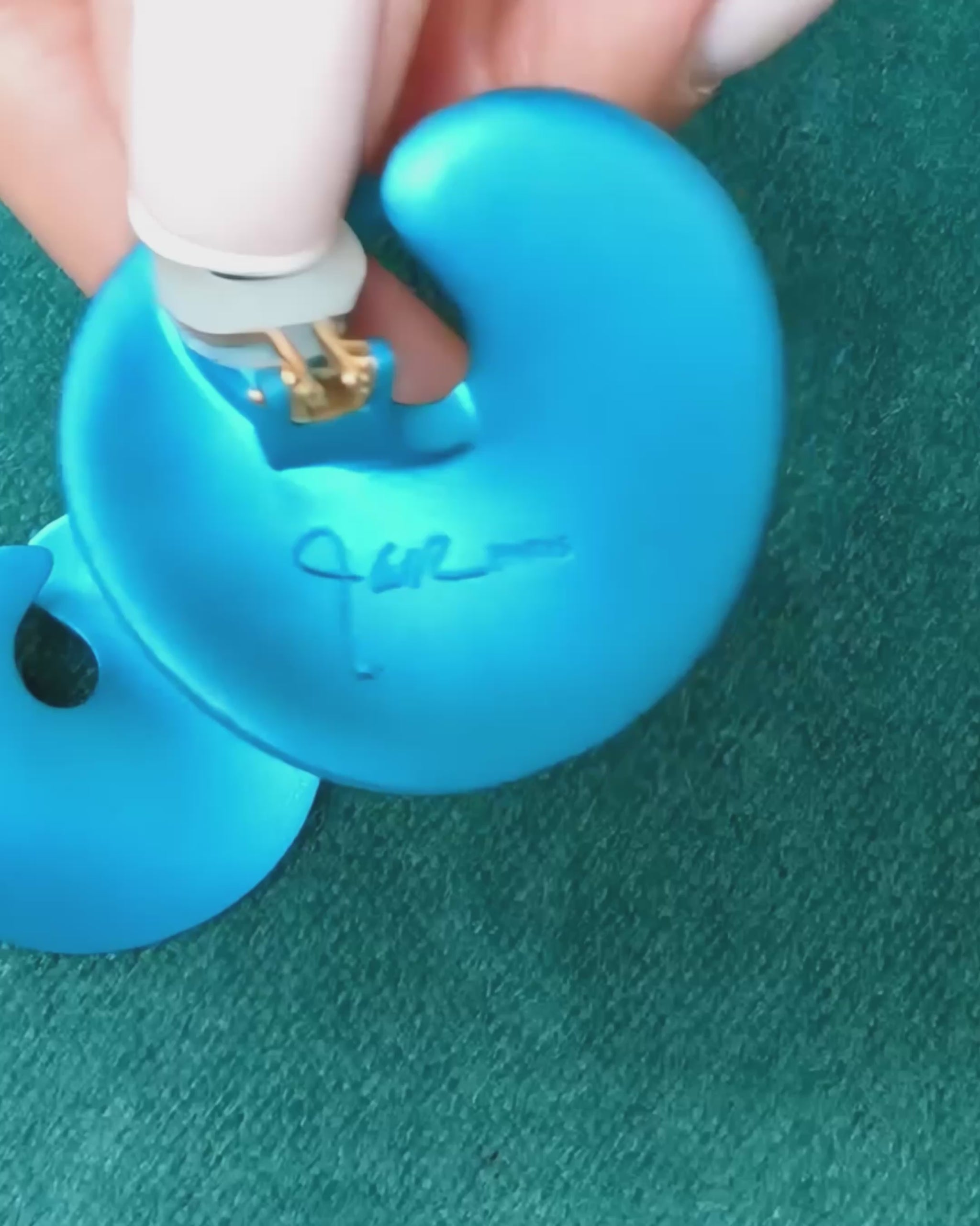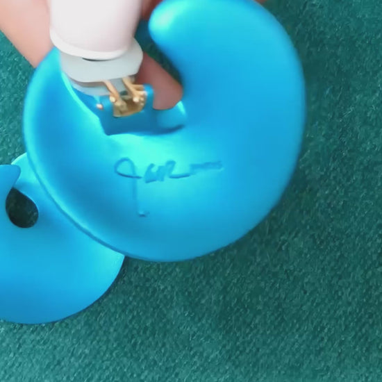 MATERIALS: Anodised aluminum with fused bright teal-blue finish, 18k yellow gold clip backs