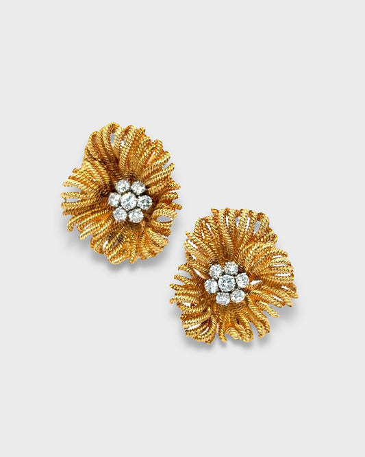 VAN CLEEF & ARPELS DIAMONDS, PLATINUM & YELLOW GOLD FLORAL EARRINGS, 1970s