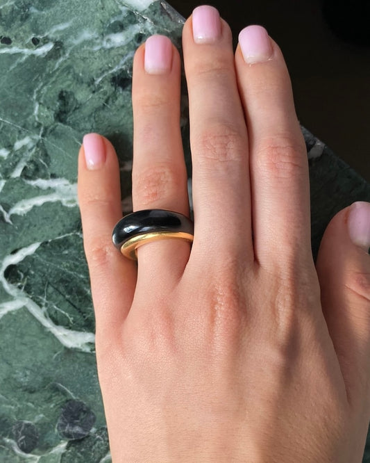 VAN CLEEF & ARPELS YELLOW GOLD & ONYX RING, 1970s
