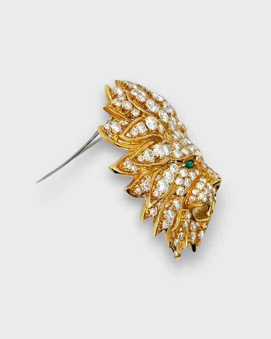 VAN CLEEF & ARPELS DIAMONDS, EMERALDS & YELLOW GOLD LION BROOCH, 1970s