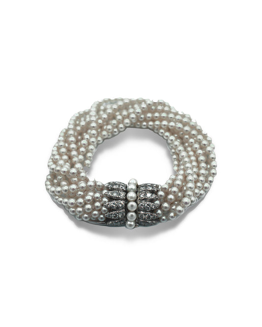 VAN CLEEF & ARPELS PEARL, DIAMOND & PLATINUM BRACELET, 1950s