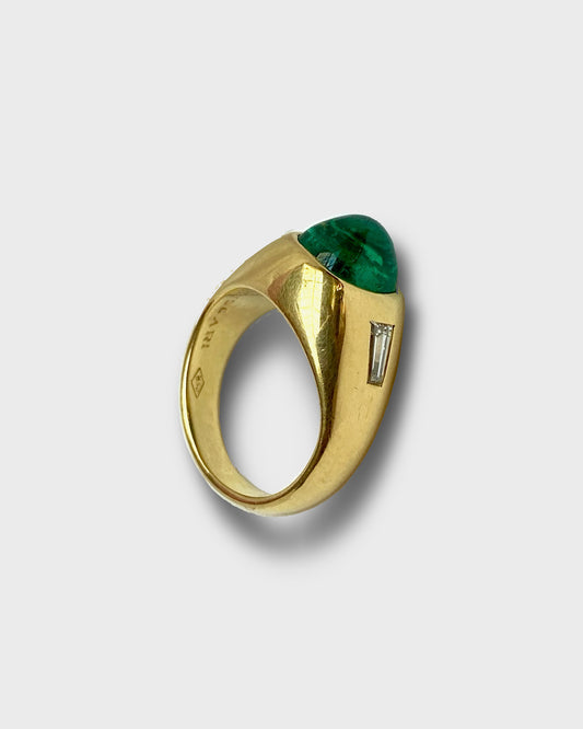 BVLGARI COLOMBIAN EMERALD, DIAMONDS & YELLOW GOLD RING