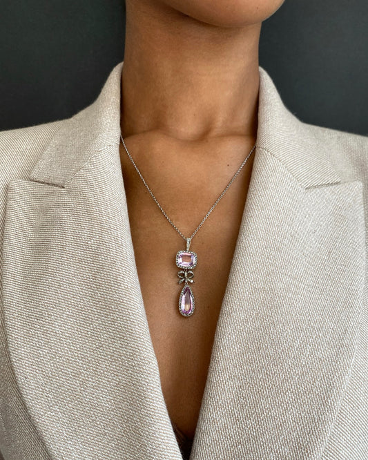 BELLE ÉPOQUE PINK TOPAZ, DIAMONDS, PLATINUM & YELLOW GOLD PENDANT NECKLACE, 1900s
