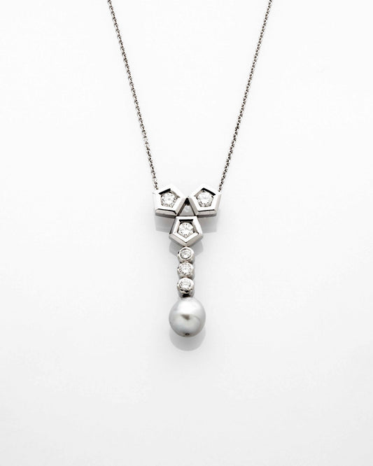 PEARL, DIAMONDS & WHITE GOLD PENDANT NECKLACE, 1948