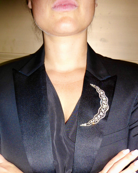 DIAMOND, GOLD & SILVER VICTORIAN CRESCENT MOON BROOCH