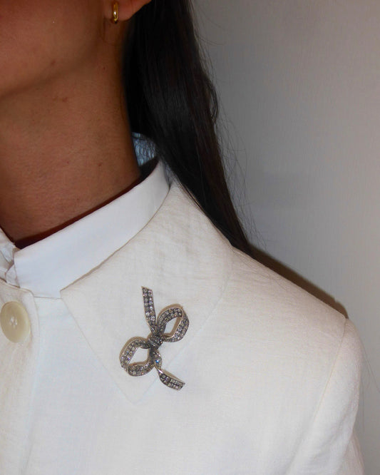 BELLE ÉPOQUE DIAMOND, GOLD & SILVER BOW BROOCH, 1890s