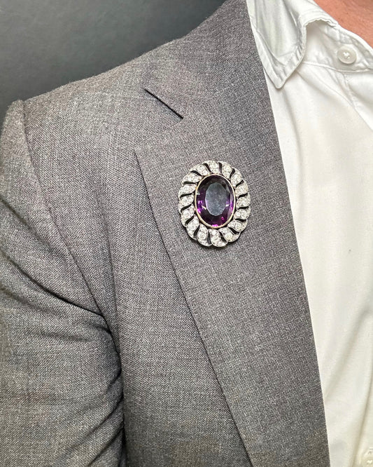AMETHYST, DIAMOND, SILVER & GOLD BROOCH, 1850s