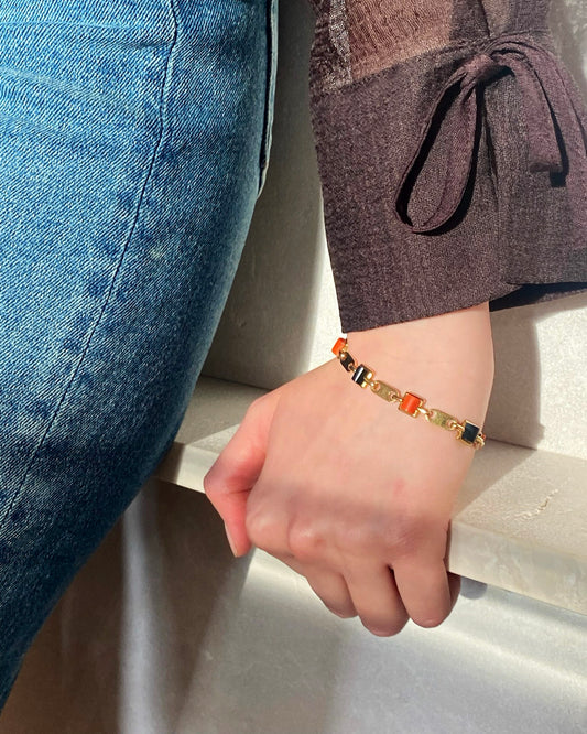 CARTIER GOLD, CORAL & ONYX LINKS BRACELET, 1970s