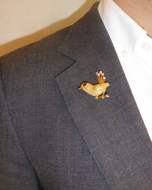 CARTIER RUBY, DIAMOND & YELLOW GOLD BROOCH, 1950