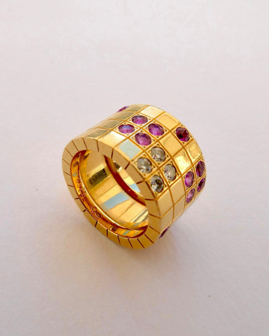 CARTIER DIAMONDS, PINK SAPPHIRES & YELLOW GOLD RING, 1980s