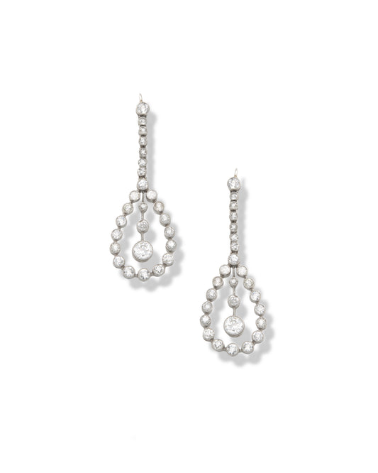 BELLE ÉPOQUE DIAMONDS, WHITE GOLD & PLATINUM DROP EARRINGS, 1910s