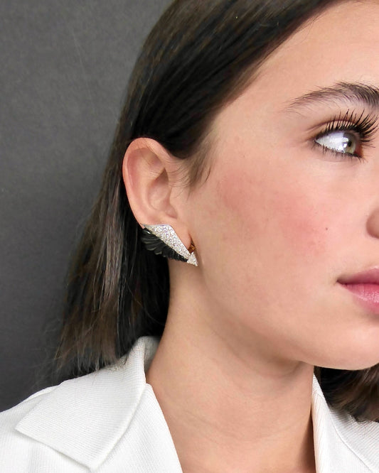 DIAMONDS, ONYX, PLATINUM & YELLOW GOLD EARRINGS, 1980s