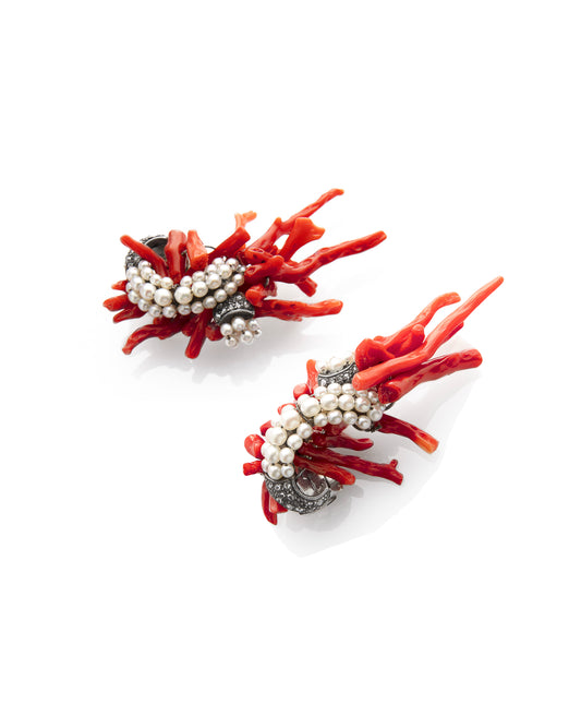 RENÉ BOIVIN DIAMOND, CORAL, PEARL & GOLD EARCLIPS, 1965