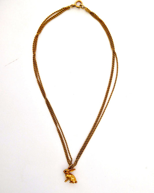 GOLD, PEARL & AMETHYST RABBIT PENDANT NECKLACE, 1880s