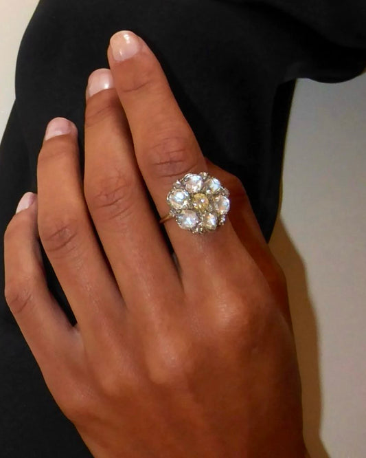 VICTORIAN DIAMOND CLUSTER & YELLOW GOLD RING, 1870s