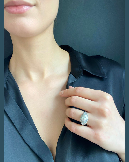 BELLE ÉPOQUE DIAMONDS, YELLOW GOLD & PLATINUM 'BOAT' RING, 1890s