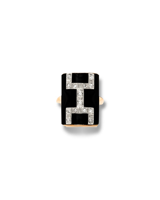 ART DÉCO DIAMOND, ONYX & ROSE GOLD RING, 1920s