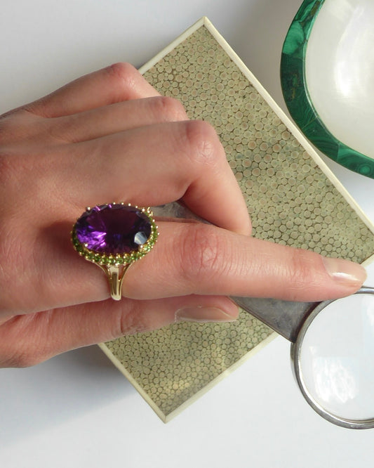 AMETHYST, TSAVORITE & YELLOW GOLD RING, 1950s