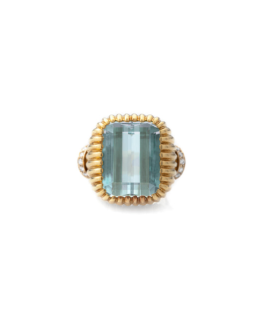 AQUAMARINE, DIAMOND, YELLOW & WHITE GOLD RING, 1950s