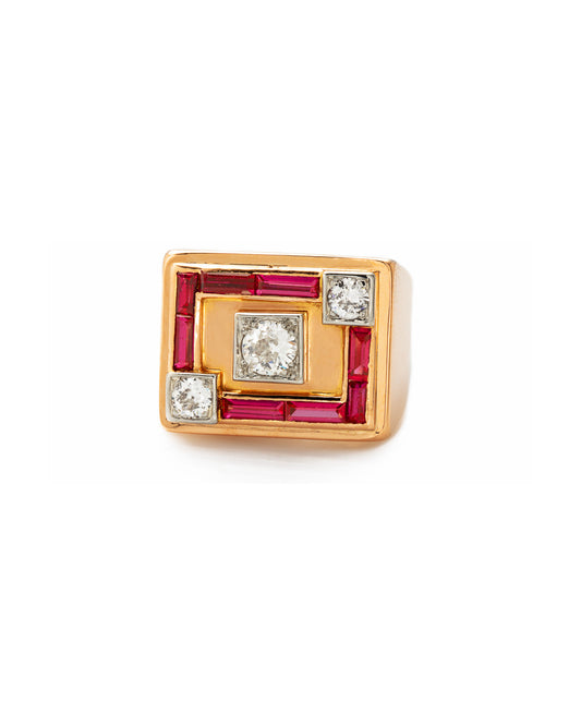 RUBY, DIAMOND & ROSE GOLD TANK RING, 1940s