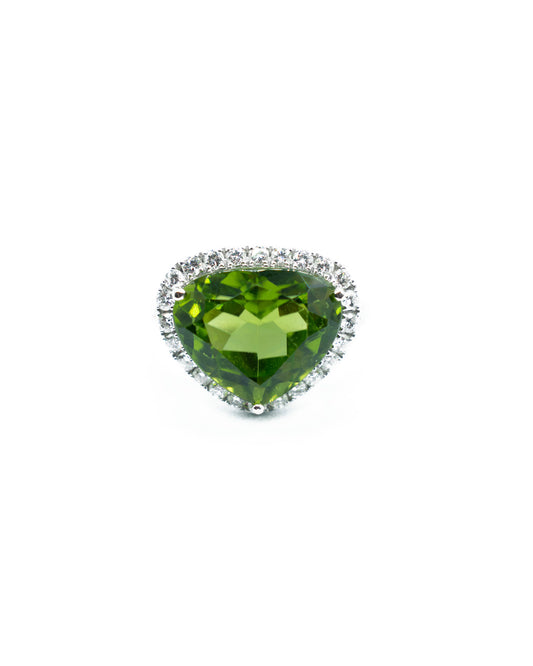PERIDOT, DIAMONDS & WHITE GOLD HEART-SHAPED RING