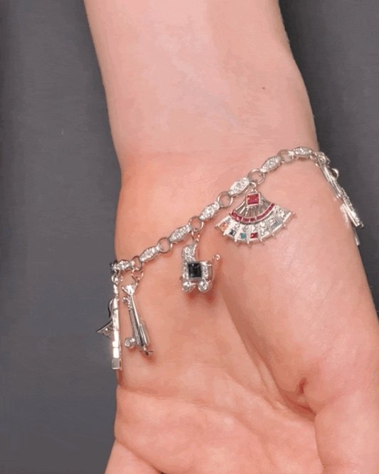 ART DÉCO DIAMOND, COLOURED GEMSTONES & PLATINUM BRACELET WITH 12 CHARMS, INCL. 1 BY CARTIER