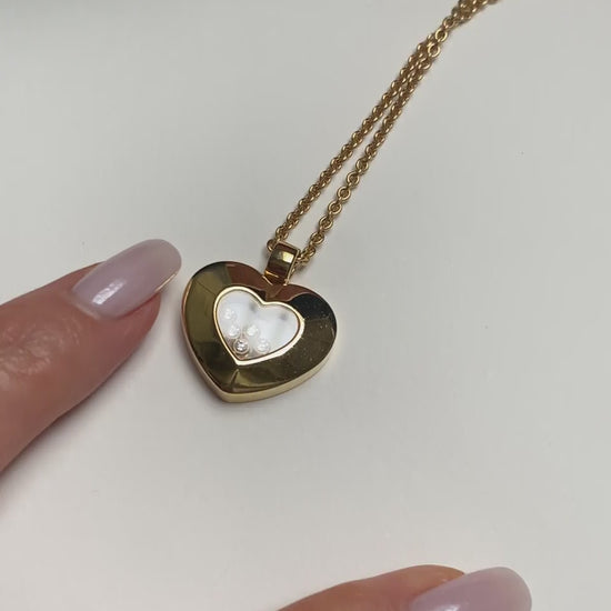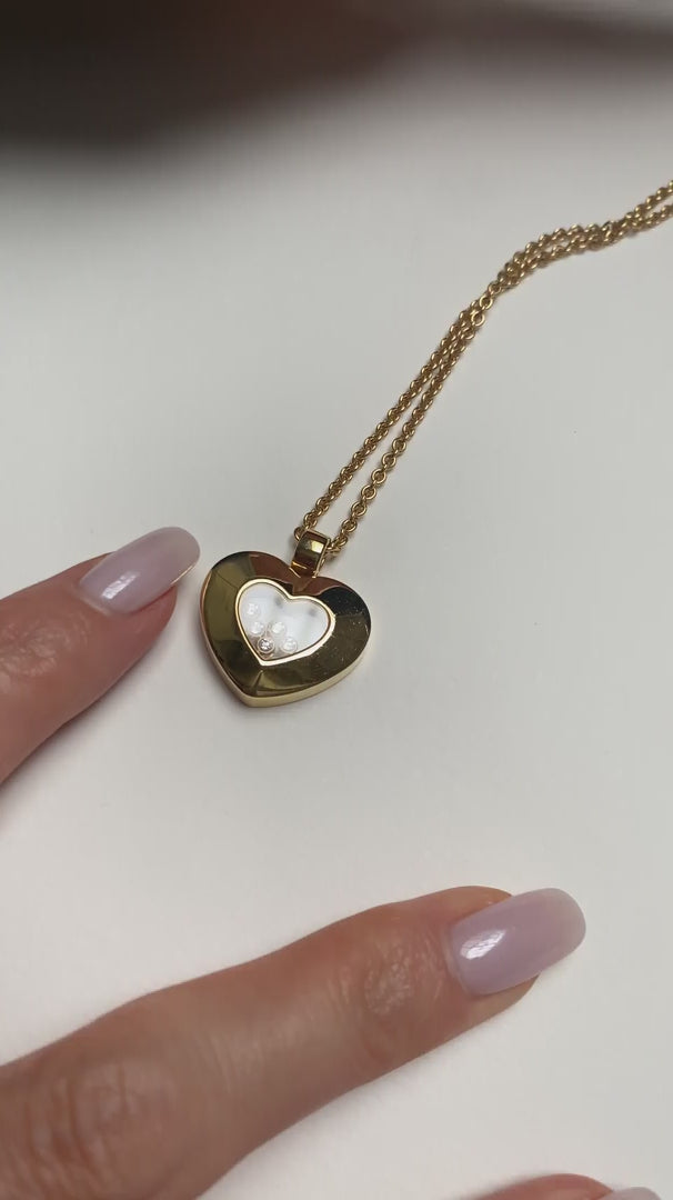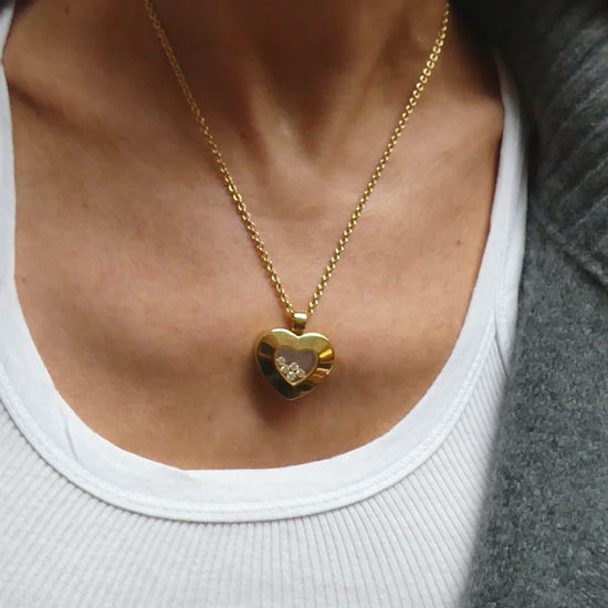 First introduced in 1976, Happy Diamonds revolutionised fine jewellery design by setting free what had always been fixed — the diamond itself. In this early edition of Chopard’s signature necklace, five brilliant-cut diamonds dance within a gold heart, floating freely with your every movement. This preowned model carries heavier gold weight than current iterations — it is more sculptural, more tactile, and so iconic.