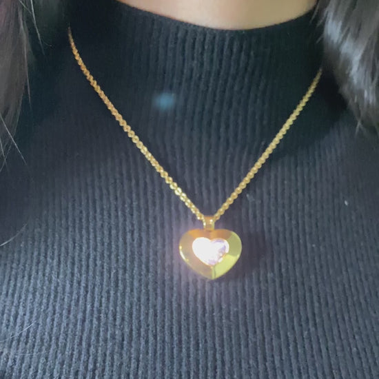 STYLE: As styled in the Gallery, the heart pendant glows against skin or fashion, equally striking on a black dress or layered against other gold chains for a contemporary mix. The floating diamonds catch light with every breath, feeling as modern today as it did on its 1970s debut.